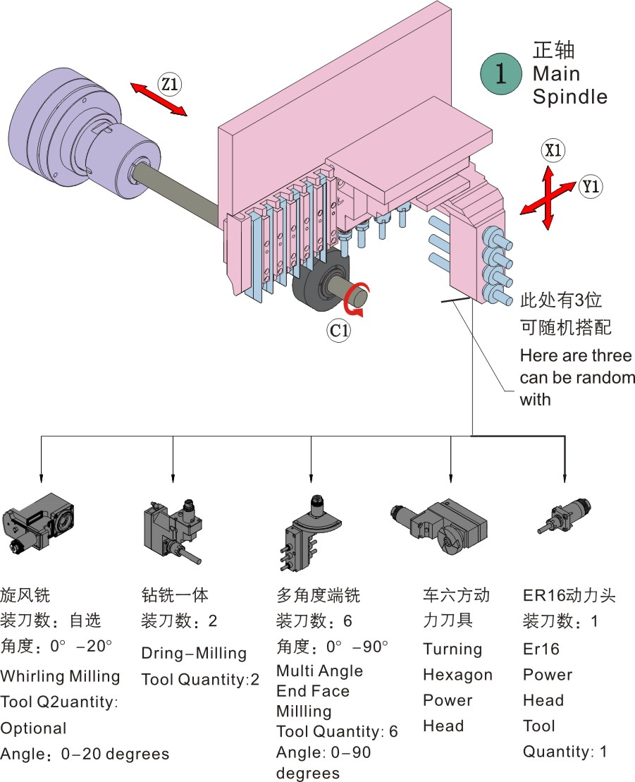 6、主軸側面動力頭支持2孔位拔插拓展功能;